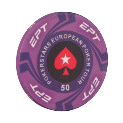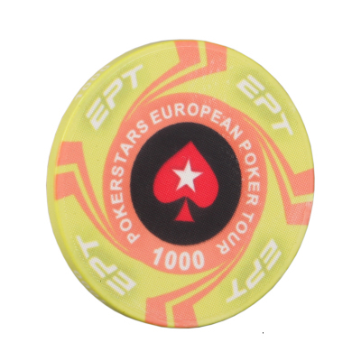 These EPT poker chips with Poker Tournament design have a full color print. The design of these European Poker Tournament chips is partly inspired by the original tournament chips of the European Poker Tour. These ceramic chips weigh 10 grams each and are available in different colors and values. The poker chips are perfectly suited for various types of poker tournaments such as deep stacked, bounty, freeze-outs, rebuys and sit and go poker tournaments. Poker rooms, casinos and private poker clubs commonly use ceramic chips for poker tournaments.